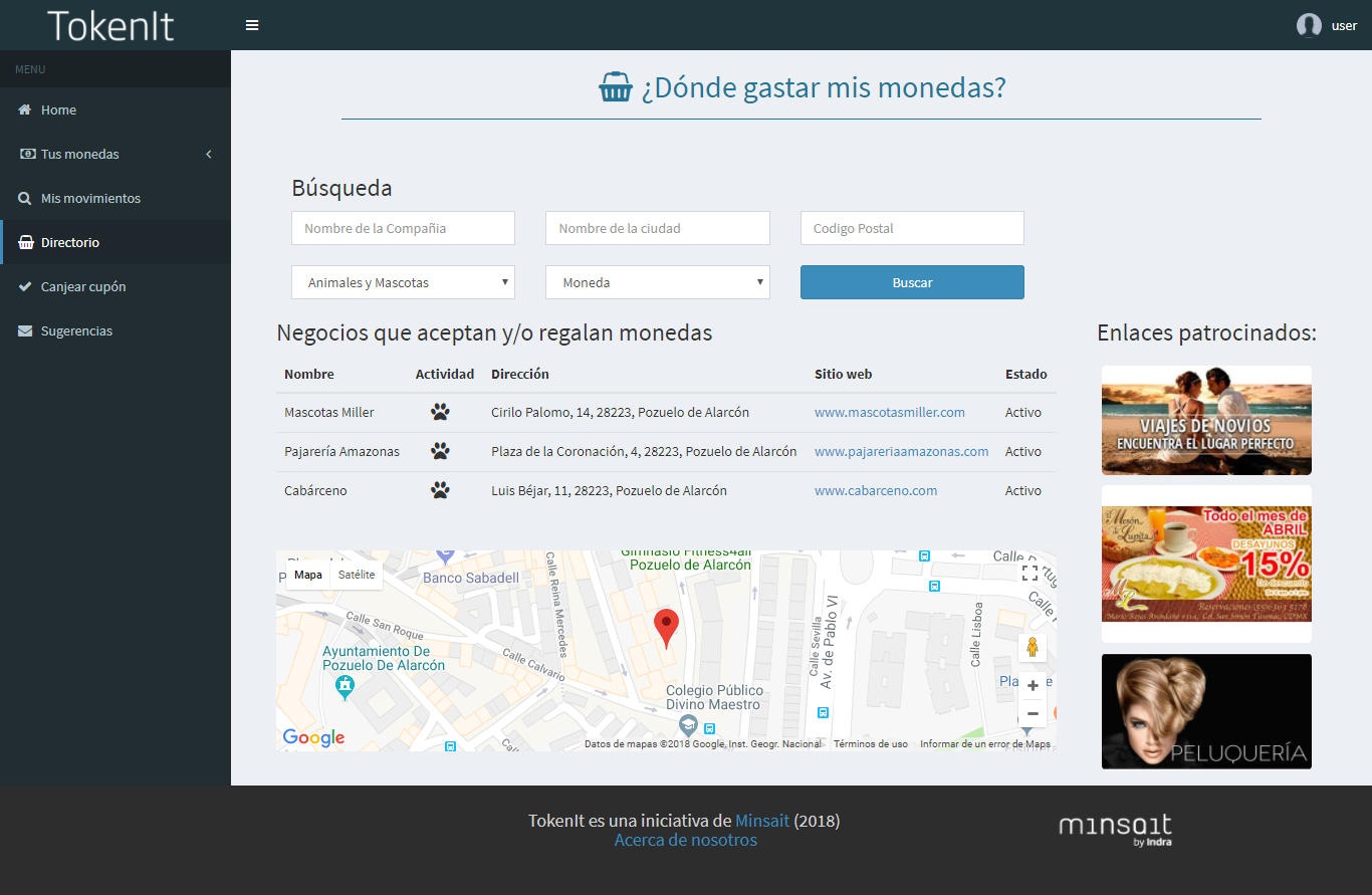 Los usuarios pueden ver todos los comercios que aceptan una moneda, con su localización e información completa.